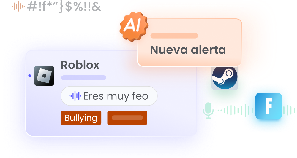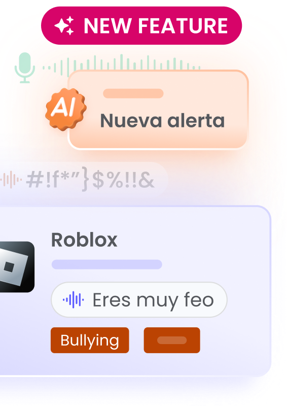 Recibe alertas si tus hijos mantienen un chat de voz peligroso en alguno de sus juegos y entérate al instante de si están expuestos al acoso, un lenguaje explícito u otros riesgos.