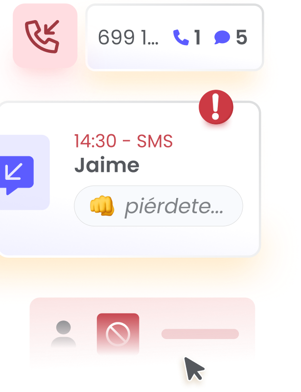 Revisa sus llamadas y sus chats, recibe alertas en tiempo real sobre los mensajes preocupantes y bloquea contactos concretos.